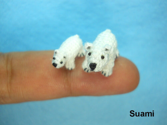 Micro Polar Bears - Tiny Crochet Miniature White Bear - Set of Two Arctic Polar Bears - Made To Order