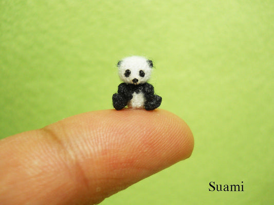 Micro Panda Bear 0.5 Inch - Tiny Crochet Amigurumi Miniature Micro Bears - Made To Order