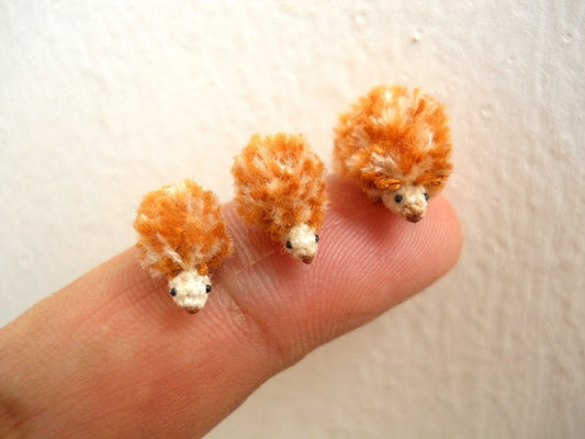 Micro Hedgehog Family - Crochet Miniature Tiny Stuffed Animals - Made To Order
