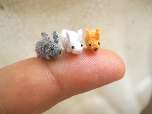 Teeny Tiny Bunny Rabbit - Micro Crochet Tiny Stuffed Animals - Set of 3 Rabbits - Made To Order