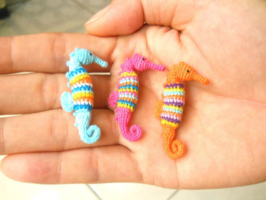 Rainbow Seahorses - Miniature Crochet Amigurumi Stuffed Animals - Made To Order