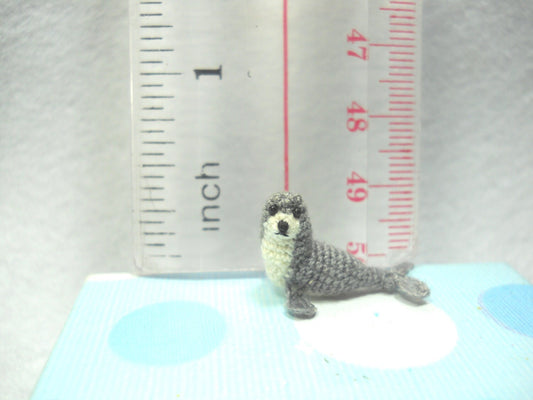 Grey White Seal - Miniature Crochet Pinniped Stuffed Animal - Made to Order