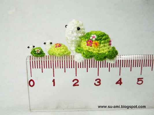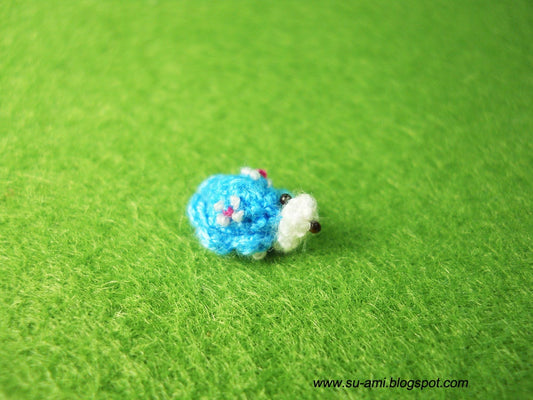 Micro Blue Turtle - Extreme Miniature Blue Turtle - Micro Crochet Flowery Tortoise - Made To Order