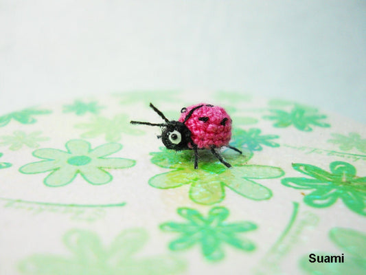 Pink Ladybug - Micro Crochet Miniature Ladybug - Made To Order