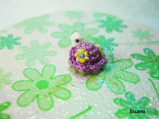 Tiny Flowery Turtle - Micro Miniature Crochet Tortoise - Purple Turtle - Made To Order