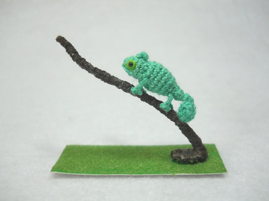 Micro Green Chameleon - Dollhouse Miniature Crochet Tiny Amigurumi Chamaeleons - Made To Order