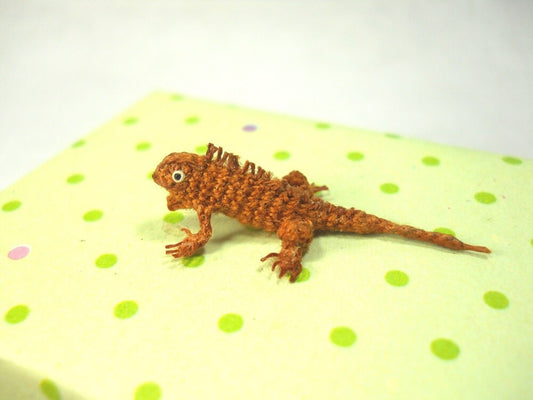 Micro Brown Iguana - Miniature Crochet Mini Lizard stuffed animal - Made To Order