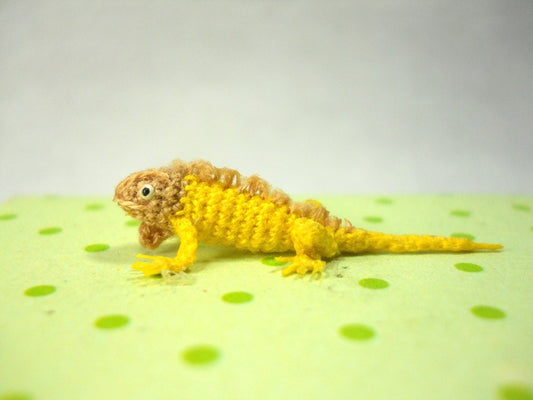 Micro Yellow Iguana - Miniature Crochet Mini Lizard stuffed animal - Made To Order