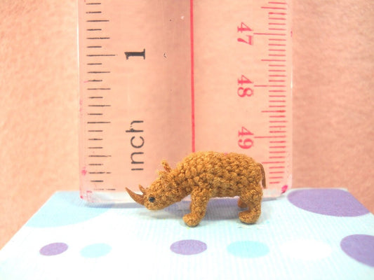 Miniature Rhino - Micro Crochet Stuffed Tiny Animal - Made To Order