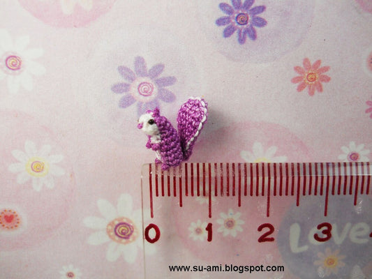 Cute Tiny Squirrels - Micro Crochet Miniature Animals Set of Two Squirrels Black and Purple - Made To Order