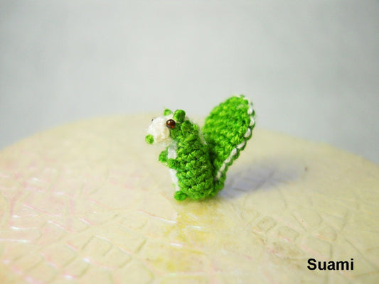 Micro Green Squirrel - Teeny Tiny Amigurumi Miniature Animal - Made To Order